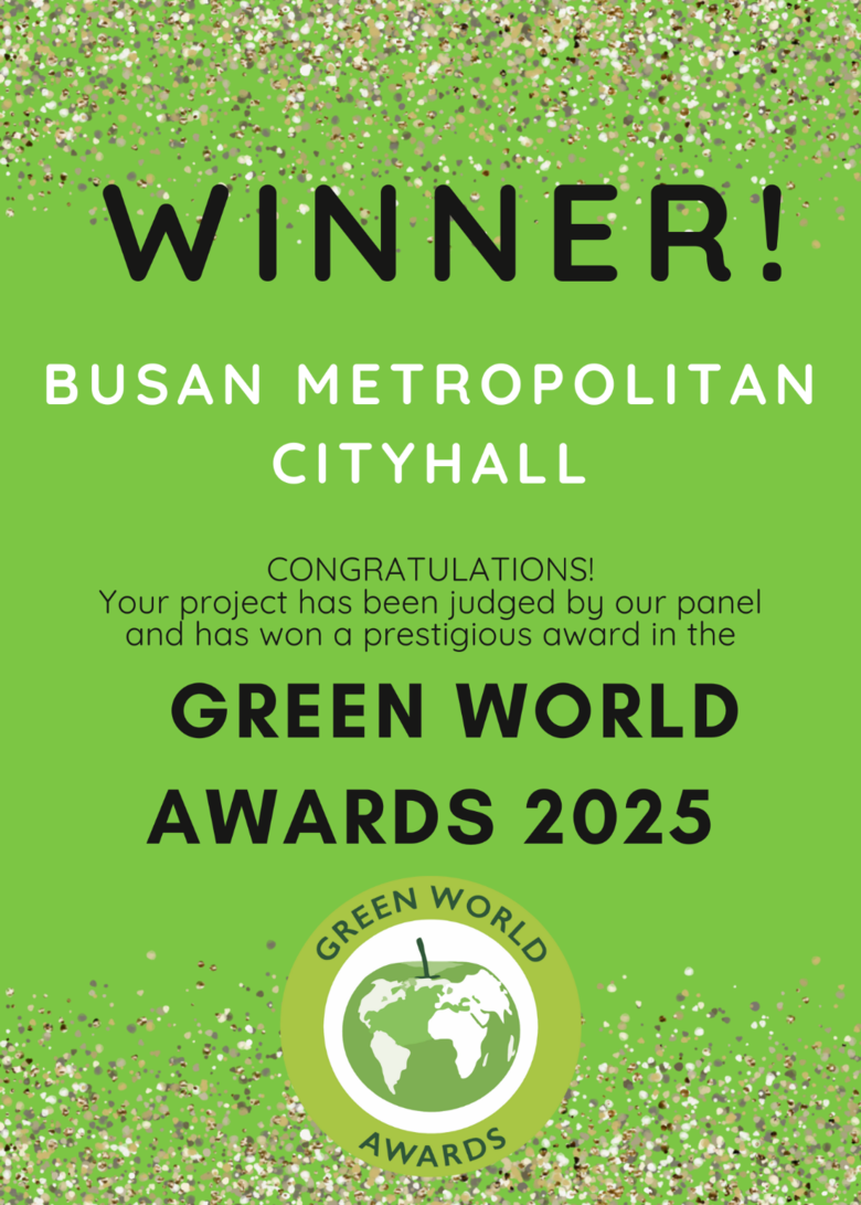 ‘그린 월드 어워즈’는 1994년 설립된 영국의 비영리 친환경 단체인 ‘더 그린 오가니제이션(The Green Organisation)’이 주관하는 세계적인 환경상으로, 2014년부터 전 세계의 우수한 환경 모범사례를 발굴하고 장려하기 위해 시작된 권위 있는 상이다.