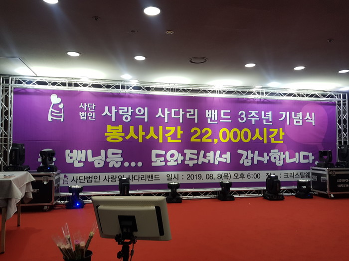 이정제 리더는 “2016년 8월8일 봉사를 위해서 시작한 사랑의 사다리 밴드가 8천명 회원분들의 도움으로 오늘 3주년이 되었다.“면서 ”오늘 3주년을 기점으로 대전시 소외계층을 위해서 더 열심히 봉사하겠다.“고 말했다.