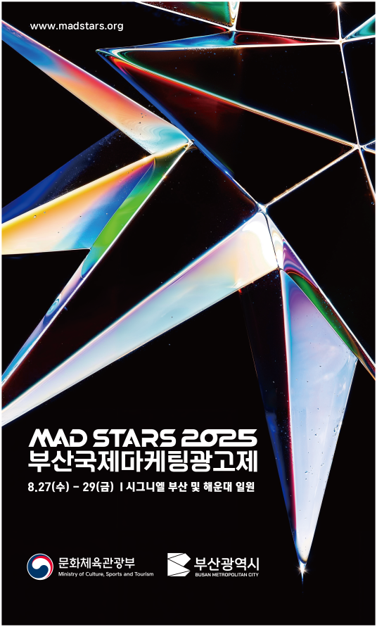 ◈ 올해, 전문가 대상 행사(8.27.~29.)와 일반인 대상 '크리에이티브 팝업'(9.19.~21.) 분리 개최 [부산 세계타임즈=이용우 기자] 부산시(시장 박형준)는 「2025 부산국제마케팅광고제(MAD STARS 2025, 이하 광고제)」가 '에이아이-버타이징(AI-vertising), 인공지능(AI) 광고 마케팅 시대'라는 주제로, 오늘(27일)부터 8월 29일까지 3일간 시그니엘 부산 및 해운대 일원에서 개최된다고 밝혔다.