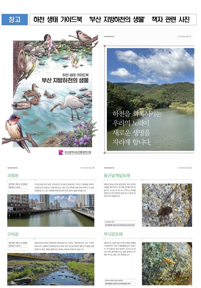 연구원은 하천 생태계의 중요성을 강조하고, 하천 생물에 관심이 있는 학생 등 시민들에게 부산 하천의 생태환경 정보를 제공하기 위해 지난 2022년부터 매년 하천생태환경과 관련한 책자를 발간하고 있다.