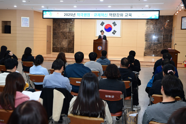 [강화군 세계타임즈=심하린 기자] 강화군(군수 박용철)이 지난 12일, 군청 4층 진달래홀에서 전 직원을 대상으로 ‘2025년 적극행정·규제혁신 역량 강화 교육’을 실시했다.