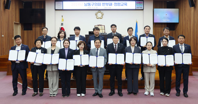 교육에 앞서 본회의장에서 진행된 ‘청렴 실천 서약식’ 에서 남동구의회 전용호 윤리특별위원회 위원장이 대표로 서약서를 낭독하였다. 서약서에는 구의회 공직자로서 공직사회의 부정부패를 예방하고 청렴·공정한 남동구를 만드는데 모범이 되겠다는 내용이 담겼다.