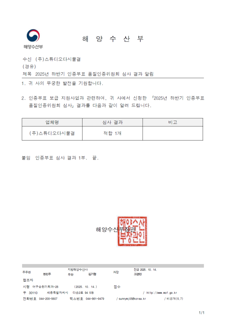 이번 성과는 인천시가 해양 미세플라스틱 저감을 위해 추진해 온 친환경 바이오산업 육성 정책의 결과로, 지자체의 지원을 통해 개발된 해양 생분해성 부표가 인증 심사를 통과한 국내 첫 사례다.