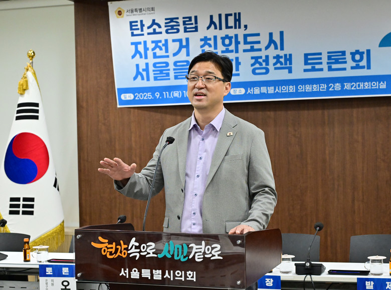 정 의원은 개회사를 통해 “자전거는 탄소중립, 교통 혼잡 완화, 시민 건강 증진이라는 세 가지 목표를 동시에 달성할 수 있는 수단”이라며 “기후위기 시대에 서울시가 자전거 친화 도시로 도약하는 것은 선택이 아닌 시대적 과제”라고 강조했다.