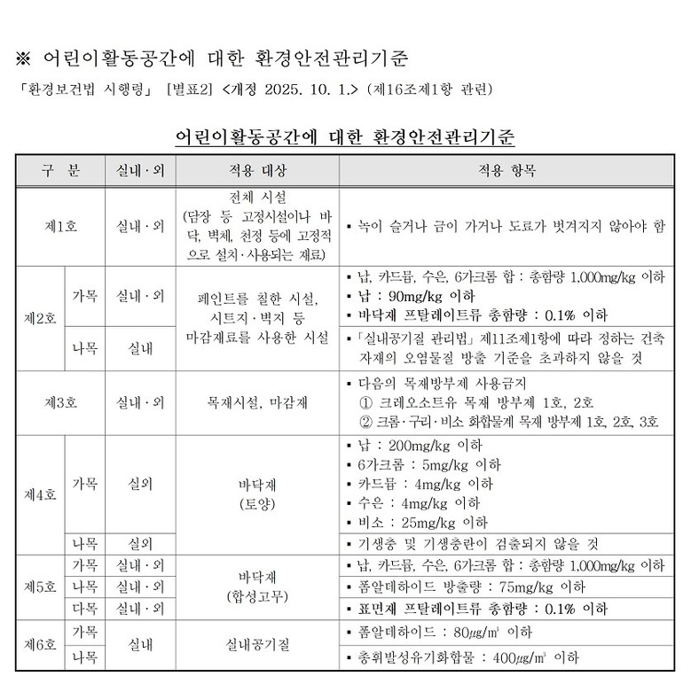 - 환경안전 관리기준 검사로 아이들의 건강 보호 앞장 -
