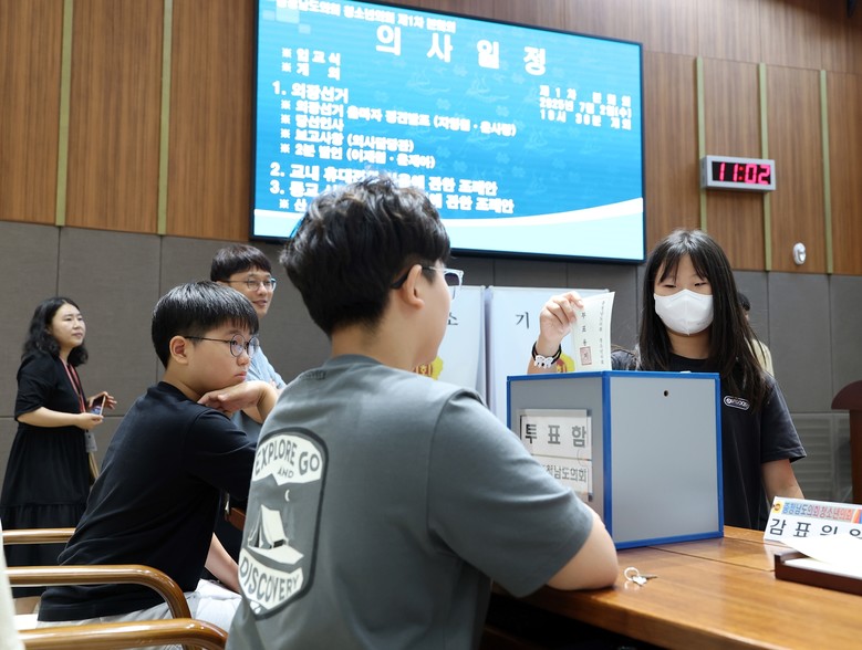 또한 학생들은 ‘쓰레기 분리배출을 실천하자’, ‘학교급식 남기지 않기’를 주제로 2분 발언을 진행하고, ‘교내 휴대전화 사용에 관한 조례안’과 ‘등교 시간을 늦추는 것에 관한 조례안’ 2건을 발의했다. 특히 조례안 처리 과정에서 찬반 토론을 통해 다양한 의견을 개진하며, 도민들을 위한 정책이 만들어지는 과정을 생생하게 배웠다.
