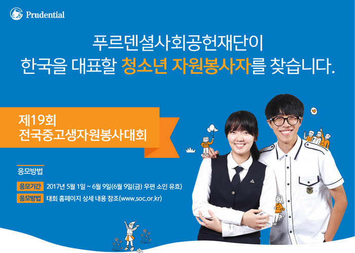 한편 19주년을 맞이하는 전국중고생자원봉사대회는 1999년 개최 이후 현재까지 총 13만명이 참여해 2만 1천건의 다양한 자원봉사활동 사례가 응모되었으며 이 중 총 4,992건의 수상사례가 발굴됐다.전국중고생자원봉사대회는 미국푸르덴셜 금융그룹이 1995년에 시작한 청소년 자원봉사자 시상 프로그램으로 현재 미국, 일본, 한국, 대만, 아일랜드, 인도,중국, 브라질에서도 개최되고 있는 국제적인 청소년 자원봉사자 프로그램이다.