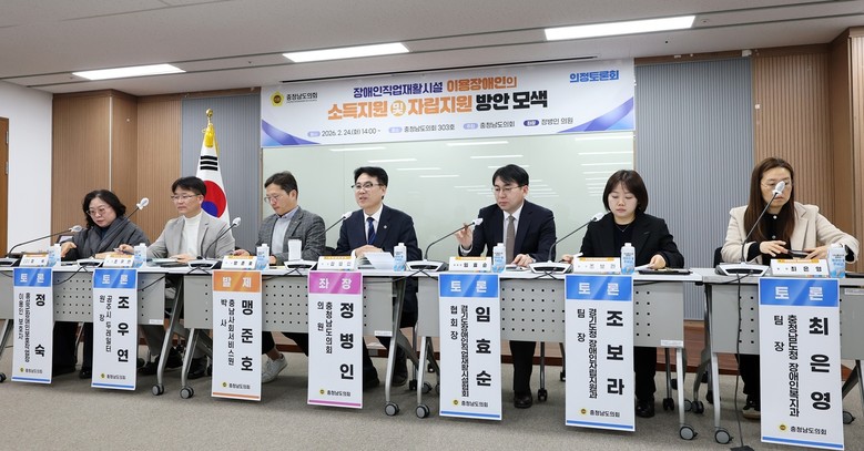 충남도의회는 지난 24일 충남도의회 회의실에서 ‘충청남도 장애인직업재활시설 이용장애인의 소득지원 및 자립지원 방안 모색을 위한 의정토론회’를 개최했다.