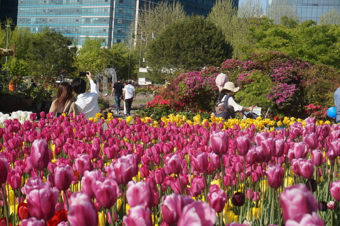 대한민국의 봄을 매혹적인 향기로 가득 채우는 2018고양국제꽃박람회는 오는 13일까지 고양시 호수공원에서 개최된다. 오직 고양꽃박람회에서만 만날 수 있는 세계 꽃들의 환상적인 하모니는 남녀노소 모두에게 특별한 추억을 선사한다. 사진은 14종 8만 송이가 넘실대는 튤립정원에서 즐거운 시간을 보내는 연인의 모습.