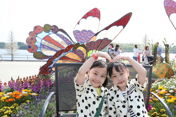 고양시 호수공원은 ‘세상을 바꿀 생명과 평와의 길’을 주제로 2018고양국제꽃박람회가 한창이다. 국가 및 기업정원에는 싱가포르, 태국, 네팔, 대만, 말레이시아의 각양각색 정원이 전시 돼 있다. 사진은 말레이시아 나비를 주제로 한 정원에서 행복한 추억을 남기는 꼬마 관람객들의 모습.