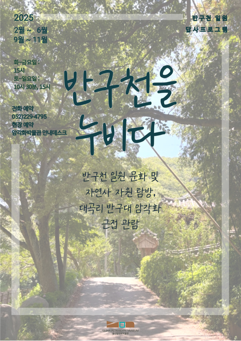 울산암각화박물관 관계자는 “답사 프로그램을 통해 반구천의 아름다움을 직접 느끼고, 반구천의 암각화가 지닌 세계유산적 가치를 깊이 이해하는 시간이 되길 바란다”라며 “앞으로도 다양한 프로그램을 통해 반구천의 암각화 가치를 지속적으로 알려 나가겠다”라고 말했다.