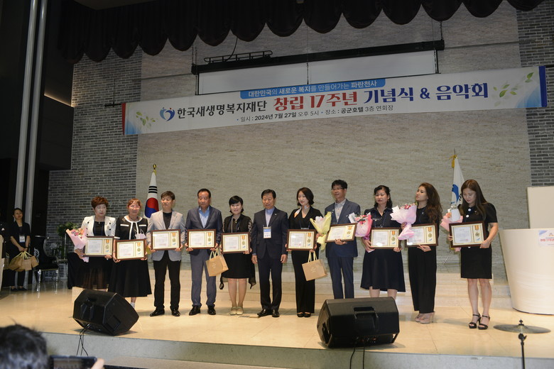 '한국새생명복지재단'창립 17주년을 기념하는 식전공연에 국제하모니카교육협회 한지희 회장의 하모니카 연주에 감탄사를 자아내기도 했다. 개회식에 성악가 장동일 바리톤의 웅장한 소리로 애국가에 이어 파란천사 임원 임명장 및공로자에게 표창장 수여식과 홍보대사 가수 연예인들의 의 축가가 이어졌다..