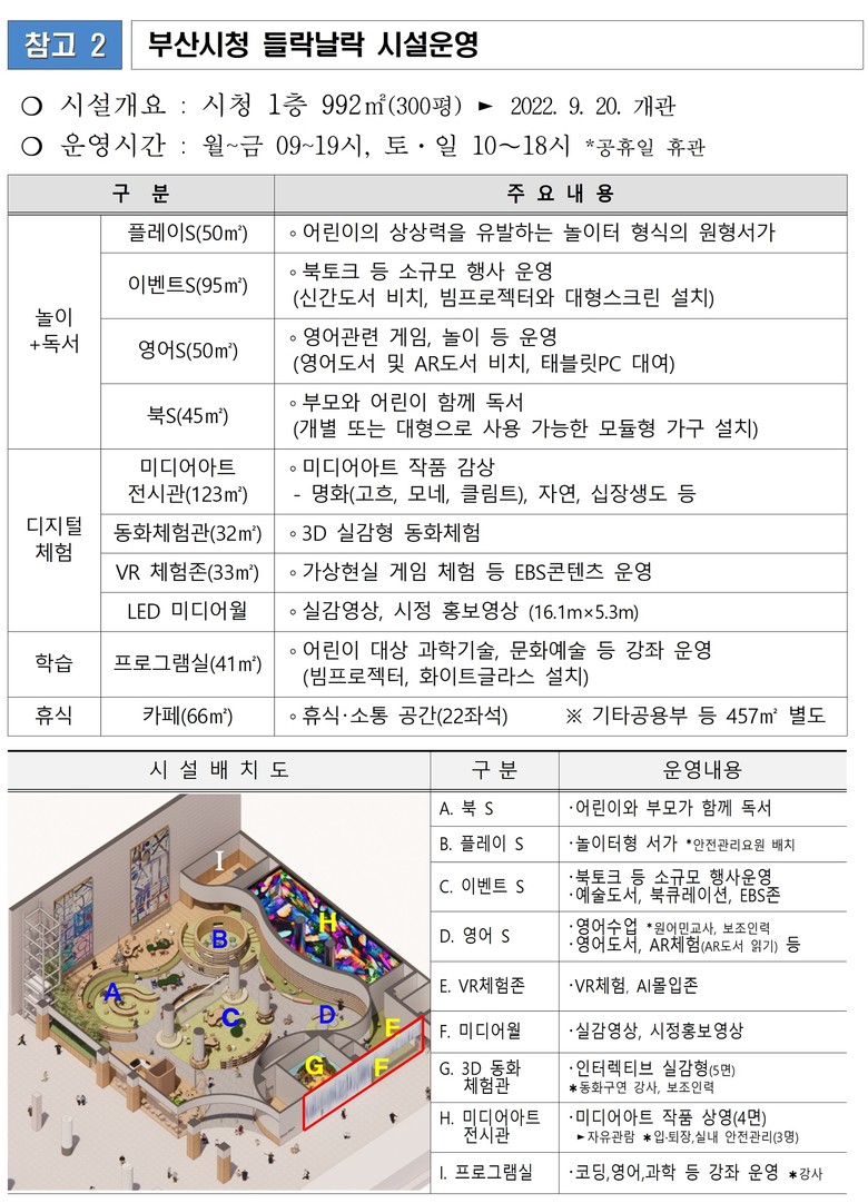 이외에도 ▲창의적 감각을 살리는 어린이 체험 행사(나만의 책 만들기, 다꾸그림노트 만들기, 어린왕자책갈피 만들기) ▲양성평등주간 전시와 연계한 동화구연 ▲한 달 내내 즐길 수 있는 시민 참여 행사(부산시청열린도서관과 함께해요!, 신규독서회원-도서관 입덕템, 부기도서카드발급)도 마련한다.