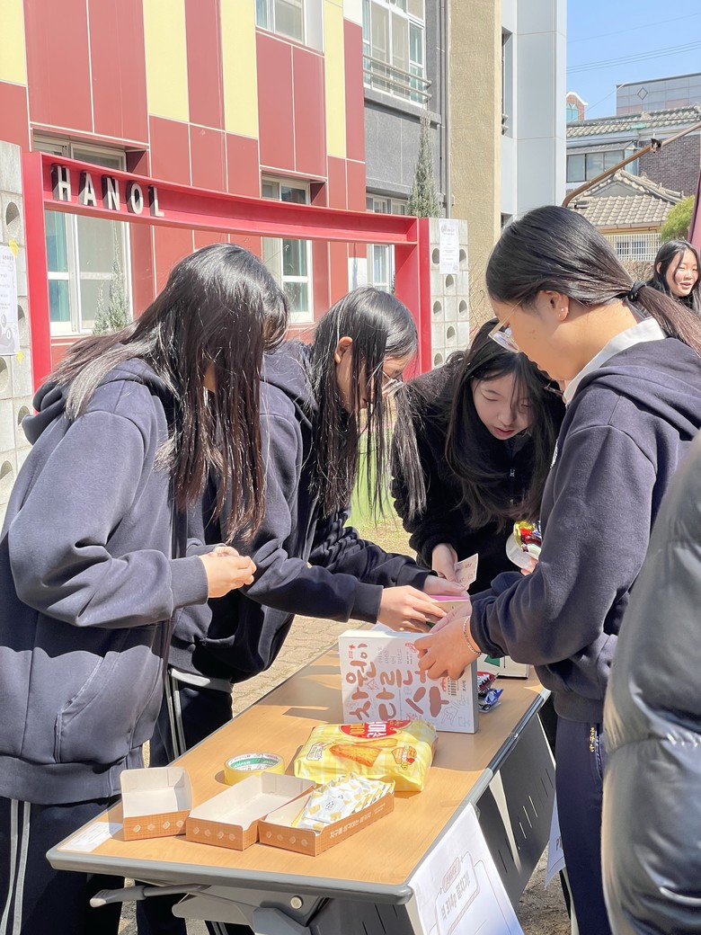 점심시간을 활용해 열린 체험 부스에서는 ▲비밀의 지도(책 314페이지 펼치기) ▲행운의 공 뽑기(3, 1, 4 순서대로 뽑기) ▲목표 지점 조준(탁구공 314에 던져 넣기) ▲감각 무게 측정(점토로 314g 맞추기) ▲원주율 암기 등 오감을 활용한 탐구 활동이 펼쳐졌다. 학생들은 지도에 스탬프를 채워가며 수학적 원리를 몸소 체험했다.