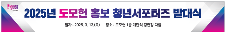 [부산 세계타임즈=이용우 기자] 부산시(시장 박형준)는 오늘(13일) 오후 5시 도모헌에서 「2025년 도모헌 홍보 청년서포터즈(이하 서포터즈) 발대식」을 개최하며, 이번 발대식을 시작으로 본격적인 활동에 돌입한다고 전했다.