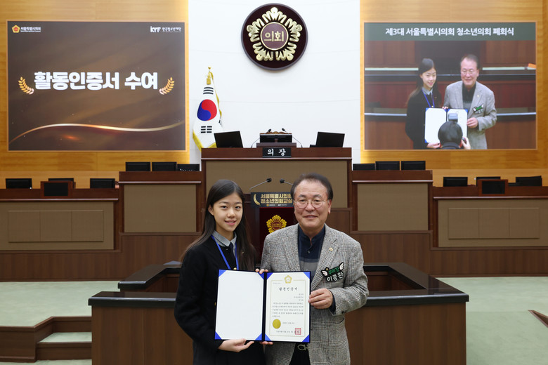 최호정 의장은 “십대의 눈으로 세상을 읽어내고, 십대의 해법으로 각자의 목소리를 내준 덕분에 지방자치와 민주주의의 가치가 한 층 더 성숙되었다”며, “이번 청소년의회 활동이 여러분의 미래를 밝히는 소중한 밑거름이 되기를 바란다”고 밝혔다.