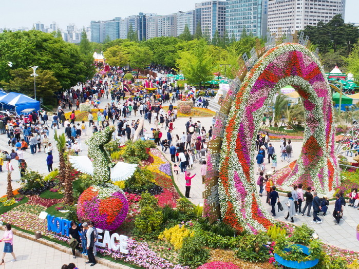 5월 황금연휴의 첫 날인 5일 2018고양국제꽃박람회가 열리고 있는 고양시 호수공원이 휴일을 만끽하는 나들이 인파로 북적였다. ‘세상을 바꿀 생명과 평화의 길’ 2018고양국제꽃박람회는 13일까지 개최되며 매일 밤 9시까지 야간개장 한다.