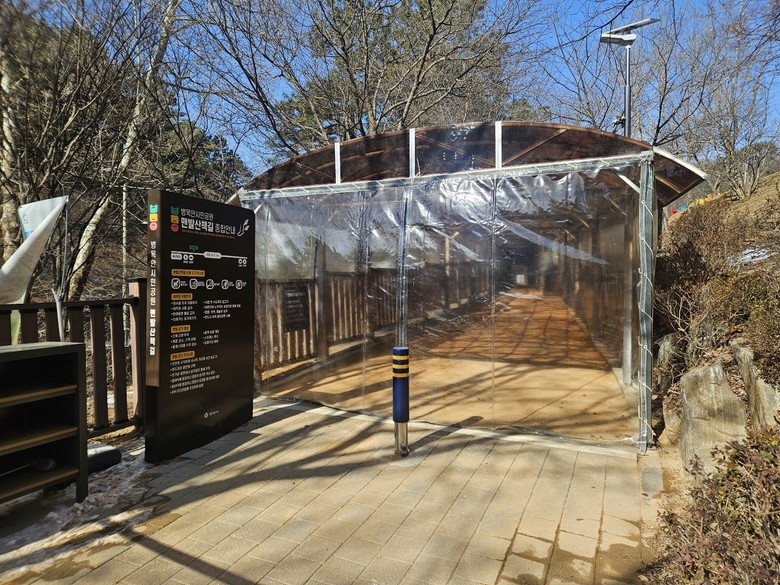 시는 2024년 조성된 병목안시민공원 맨발산책길 구간에 총 160m 길이의 지붕 캐노피와 방한 비닐막을 설치해 기온이 낮은 겨울철에도 체온 유지와 안전한 보행이 가능하도록 했다.