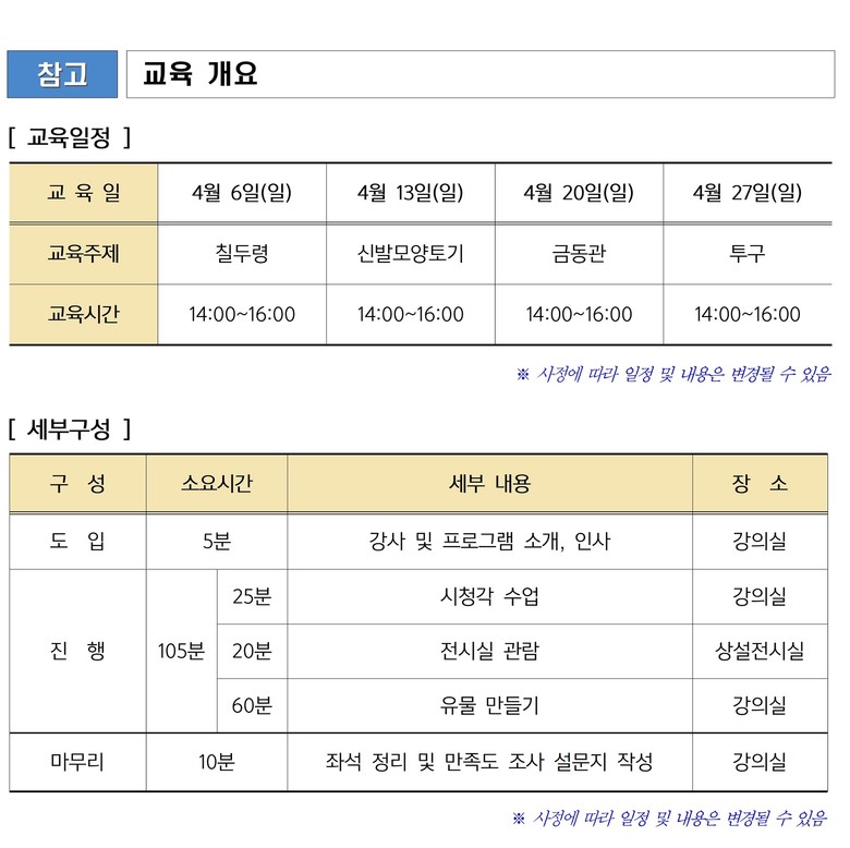 해당 프로그램은 4월 6일, 13일, 20일, 27일 총 4회 개최 예정이며, 각 행사일 오후 2시부터 4시까지 약 2시간 동안 진행된다.