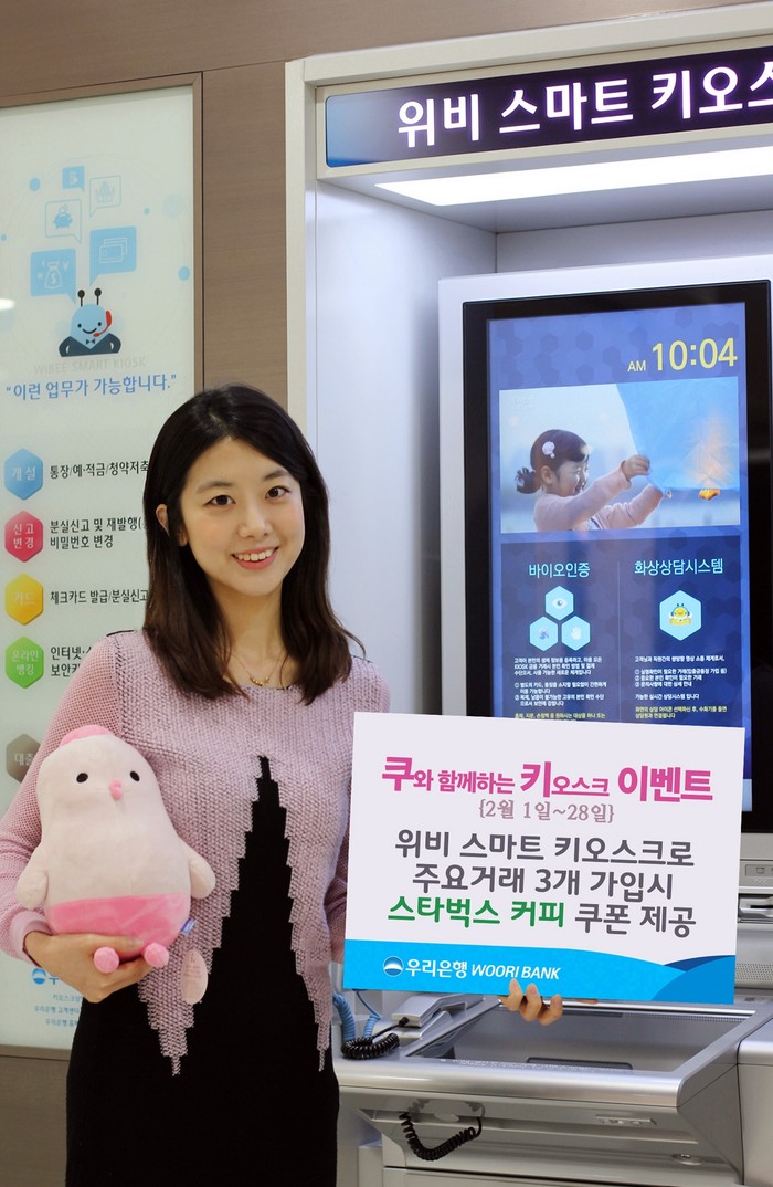 이벤트 기간 동안, 위비 스마트 키오스크를 통해 총 7가지 거래(바이오정보 등록, 입출금통장 신규, 청약저축 가입, 펀드 가입, 인터넷뱅킹 가입, 체크카드 발급, OTP카드 발급)중 3가지를 가입한 고객 선착순 2천명에게 스타벅스 커피쿠폰을 제공한다.