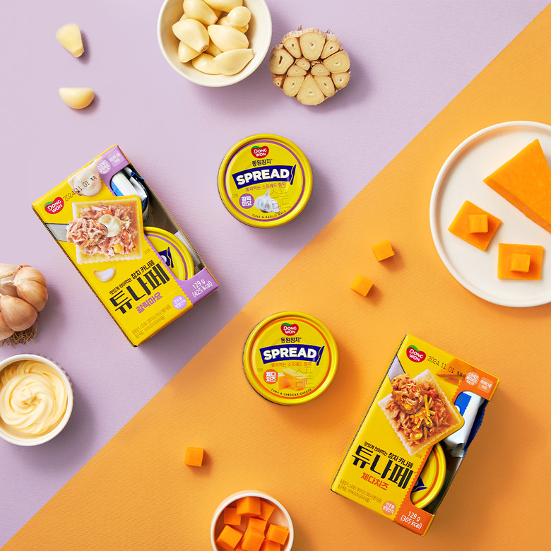 ‘동원참치 스프레드’는 참치 살코기에 감자, 당근, 스위트콘과 특제 마요네즈 소스를 넣은 제품으로 꾸덕하고 진한 풍미가 있는 ‘체다치즈’와 마늘향이 향긋한 ‘갈릭마요’ 등 2종으로 구성됐다. 별도로 재료를 준비할 필요 없이 바로 먹거나 빵, 과자에 발라 식사대용, 안주로 간편하게 즐길 수 있다. 100g당 단백질 함량이 9g에 달해 아이들 영양 간식으로도 활용할 수 있다.