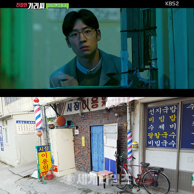 지난 9일 방송된 KBS2 '영화가 좋다'에서는 이제훈의 동생 '영재' 역을 맡은 성유빈이 부산 '연산시장'의 '소문난 손 칼국수'가 있는 골목으로 들어가자, 바로 뒤 이제훈은 '시장 이용원' 입간판 뒤에서 성유빈을 지켜보는 장면이 공개됐다.