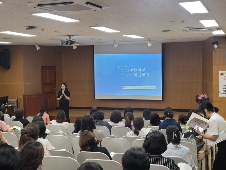 [남양주시 세계타임즈=송민수 기자] 경기도구리남양주교육지원청 인창고등학교(교장 우현주)는 매년 학년별로 실시하는 학부모대상 대입 진학설명회를 올해는 학부모상담주간 및 수업공개주간에 맞춰 진행하였다. 지난 6월11일(화) 1학년을 시작으로 12일(수) 2학년, 13일(목) 3학년으로 끝으로 학부모의 큰 호응속에 성공적으로 마무리되었다.