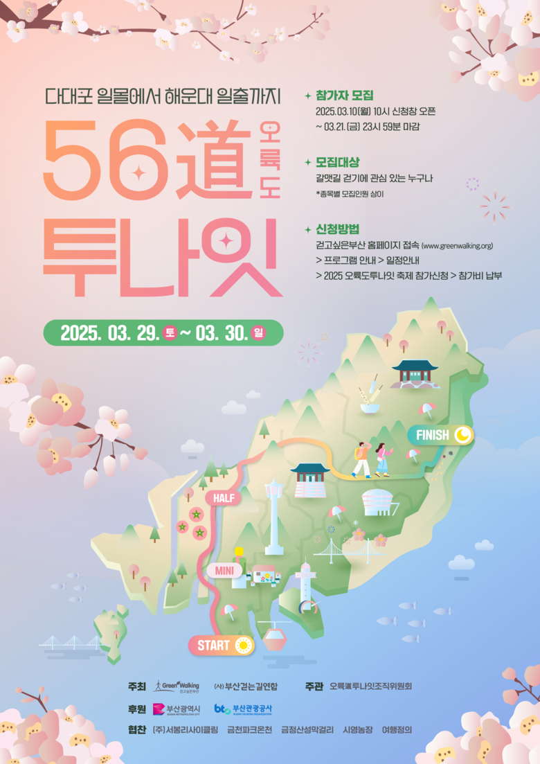 시와 부산관광공사가 후원하고, (사)걷고싶은부산과 (사)부산걷는길연합이 주최한다.