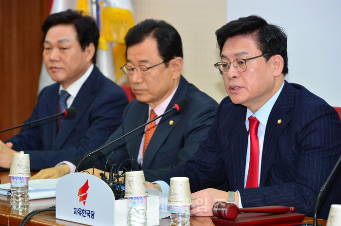 자유한국당 정우택 원내대표가 27일 오전 서울 여의도 당사에서 비상대책위원회 회의를 하고 있다. 사진 왼쪽으로 이현재 정책위의장과 박완수 비대위 위원이 자리하고 있다. 2017.02.27.