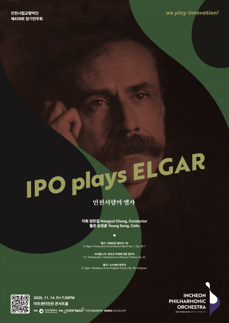 영국 낭만주의의 향기를 전할 인천시립교향악단 제438회 정기연주회 <인천시향의 엘가>는 전석 1만 원으로, 인천문화예술회관과 아트센터인천 누리집, 엔티켓 및 NOL 티켓에서 예약 가능하다.