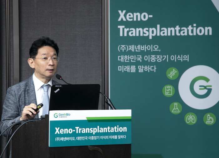 ㈜제넨바이오(대표이사 김성주, 정광원)가 국내외 이종장기 산업과 연구 관련 최신 지견을 공유하는 기자간담회를 개최했다. 제넨바이오는 국내 첫 원스탑(One-stop) 이종장기 이식 플랫폼으로, 원료돼지 개발부터 이종이식 제품 개발, 실제 이식까지의 전 과정을 아우르는 연구와 사업을 진행하고 있다.