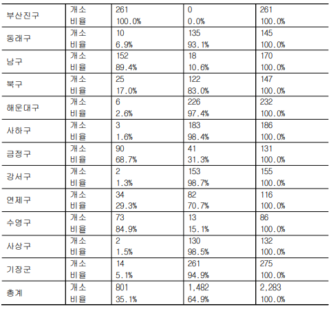 표 1 > 부산광역시 노인여가복지시설 현황 (2021년 기준)