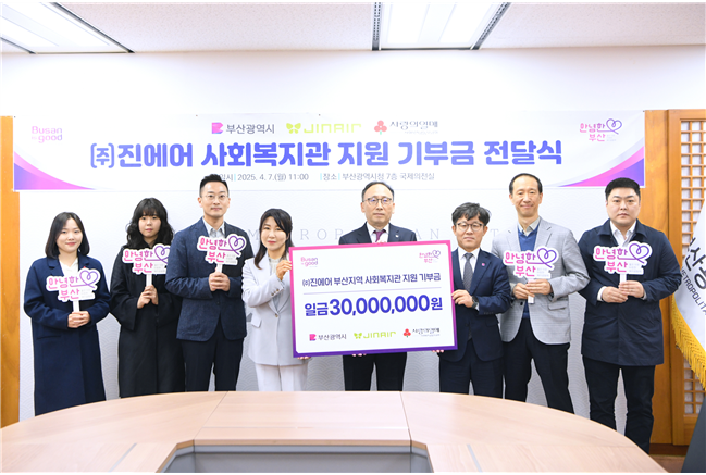 전달식에는 시 사회복지국장, 진홍 (주)진에어 부산여객지점장, 김경희 사회복지공동모금회 중앙회 사회공헌본부장 등이 참석했다.
