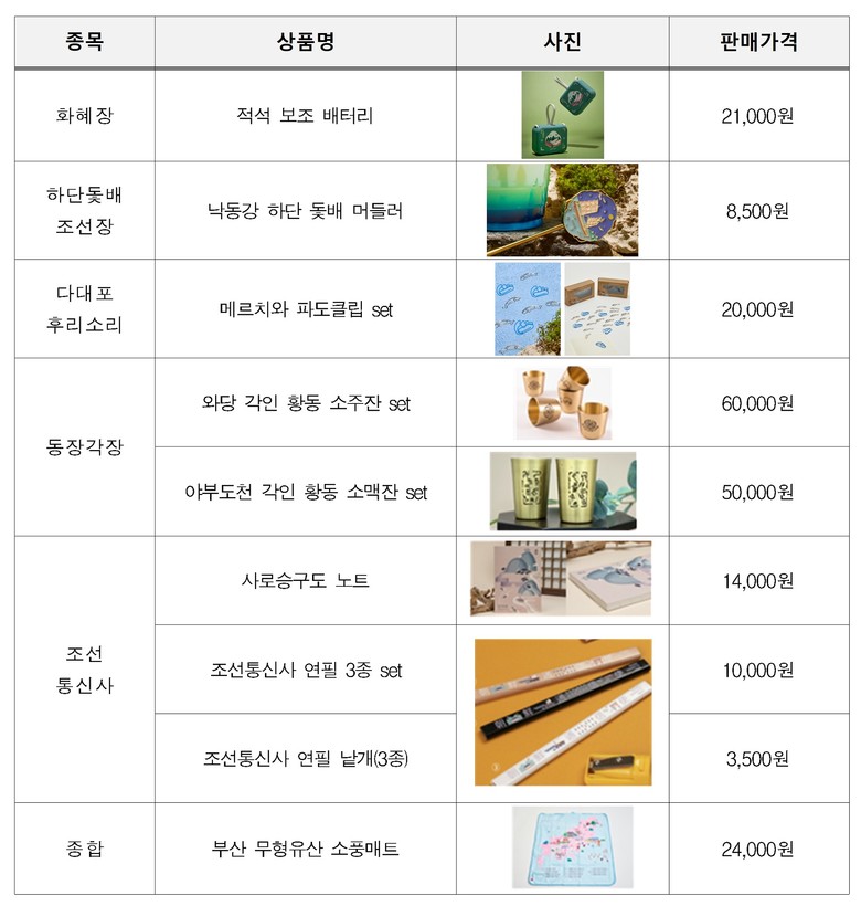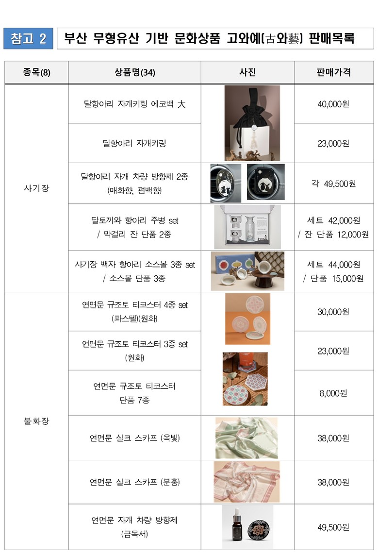 상품에 대한 자세한 정보는 「고와예(古와藝)」 공식 누리집(gohwaye.com)을 참고하거나 부산전통예술관(☎ 051-758-2530)으로 전화 문의하면 된다.