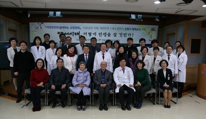 한림대학교강남성심병원(병원장 이영구)은 1월 21일 본관3동 미카엘홀에서 대한민국 1세대 철학자이자 ‘백년을 살아보니’의 저자인 김형석 연세대 명예교수를 초청해 강연을 열었다.