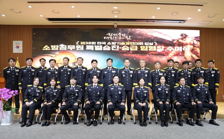 도 소방본부는 1일 도청 대회의실에서 제38회 전국소방기술경연대회 수상자에 대한 특별승진 및 특별승급 임명장 수여식을 개최했다고 밝혔다.