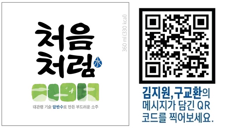 또한, 병 제품의 후면 라벨에는 ‘처음처럼’의 광고 모델로 활동 중인 배우 김지원씨, 배우 구교환씨의 음성 메시지를 들을 수 있는 QR코드를 새롭게 추가했다.