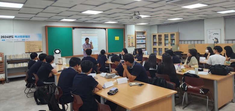 21일부터 3일간에 걸쳐 진행되는 독서토론 캠프는 독서토론 전문가와 함께 책을 읽고 커플토론 및 원탁토론, 찬반가치토론 등의 다양한 방식으로 토론하면서 논리적 사고력과 표현력을 키우고 협력과 소통하는 역량을 기르는 활동으로, 1~2학년 24명의 학생들이 프로그램에 참여하고 있다. 이번 캠프는 자신의 주체성과 직업선택, 직업인의 책임과 소명의식 등 진로와 관련된 주제로 깊은 토론이 이루어진다.