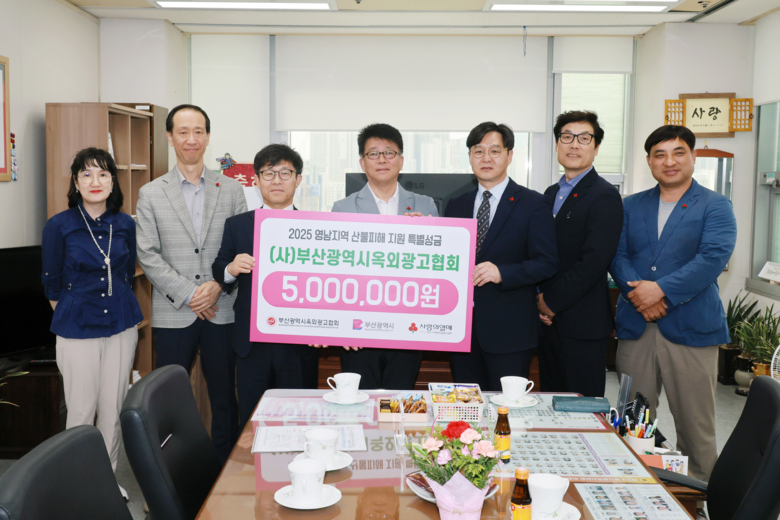 [부산 세계타임즈=이용우 기자] 부산시(시장 박형준)는 어제(8일) (사)부산광역시옥외광고협회(이하 부산옥외광고협회)가 영남지역 산불피해 지원을 위해 기부금 5백만 원을 전달했다고 밝혔다.
