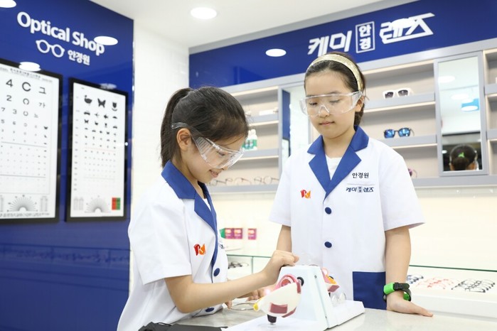 ‘키자니아 케미렌즈 안경원’은 눈과 안경, 안경사에 대한 직업 체험과 재미를 제공하는 이색 프로그램을 제공한다. 어린이들이 직접 안경사가 되어 시력검사표를 통해 시력 검사하는 법을 교육받고 눈 건강을 위한 기능성 렌즈, 자외선 자외선 차단 안경렌즈의 중요성에 대해 이론 설명과 함께 직접 체험을 하게 된다. 또한 얼굴형에 어울리는 안경 스타일링 교육으로 재미를 더했으며, 체험 완료 후에는 명예 안경사 자격증을 발급받을 수 있게 해 어린이들의 성취감을 높였다.