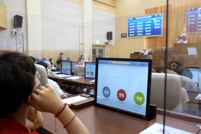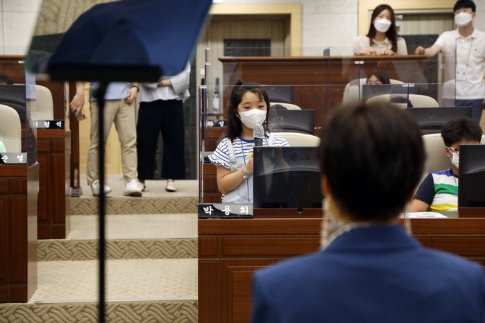 또한 각 지역구 의원인 차성호·채평석·손현옥·이영세 의원과 질의응답 시간을 가진 데 이어 2분 자유발언 및 전자투표 등 일일 모의 의원 활동을 체험했다.