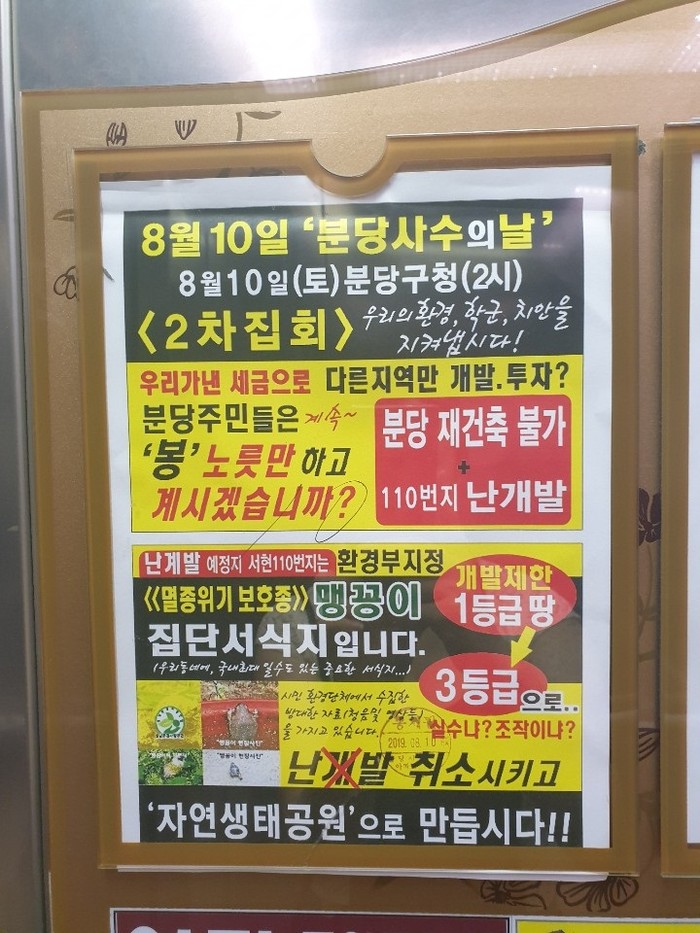 넷째, 서현동 110번지 일원은 도시 주변에서는 찾아볼 수 없는 천혜의 자연환경으로 요즘 보기 드문 멸종 위기 보호종 맹꽁이의 집단 서식지로 보호, 보존되어야 한다.