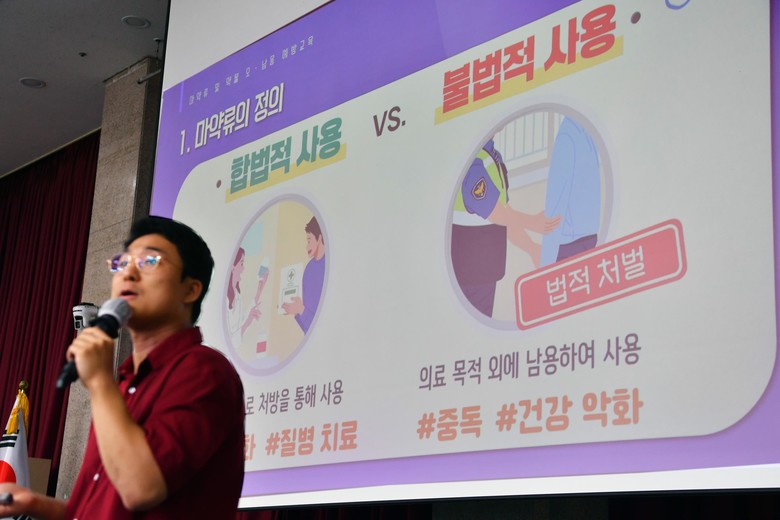 이번 교육은 최근 불확실한 미래로 불안을 느끼는 청년층을 중심으로 증가하고 있는 마약류 범죄에 대한 경각심을 높이고, 마약의 위험성을 알리며 유혹에 대처하는 능력을 키우기 위해 마련됐다.