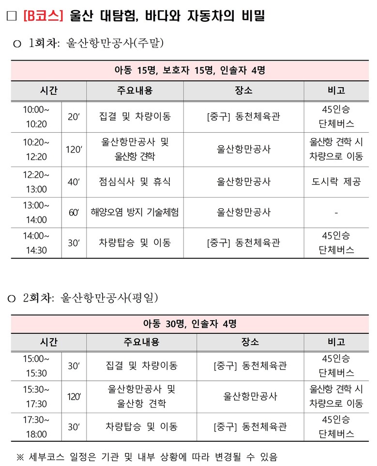 ▲비과정(B코스, 2회)은 항만·자동차 산업 분야로, 울산항 견학을 통해 항만 관련 직업군을 접하고, 현대자동차를 방문해 제조 및 수출산업 직군을 직접 경험할 수 있도록 구성됐다.