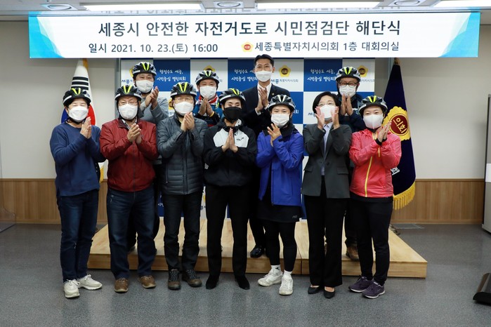 세종시의회 이태환 의장과 연구모임 이순열 대표의원, 손인수 의원이 이날 해단식에 참석해 자발적인 참여로 자전거도로 개선을 위해 노력해온 시민점검단을 격려했다.