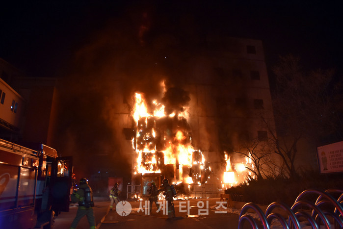 31일 새벽 2시 50분께 서울 영등포구 문래동 물류창고에서 원인미상의 화재가 발생해 소방대원들이 화재진압을 하고 있다. 2017.01.31. (사진=영등포소방서 제공)