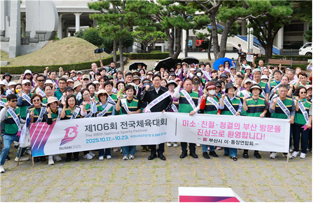 이정숙 시 이‧통장연합회 대표는 “전국체전과 장애인체전은 부산의 위상을 높일 중요한 기회”라며, “시민의 따뜻한 미소와 깨끗한 도시환경이 어우러져 성공적인 대회 개최의 밑거름이 될 것”이라고 참여 소감을 전했다.