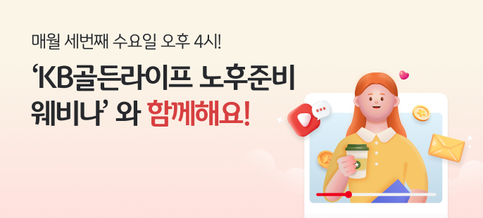 참여를 원하는 고객은 유튜브 채널에서 ‘KB스타연금’을 검색하거나, 'KB골든라이프'를 카카오톡 친구 추가하면 웨비나 시작 직전에 발송되는 접속 링크로 간편하게 참여할 수 있다.
