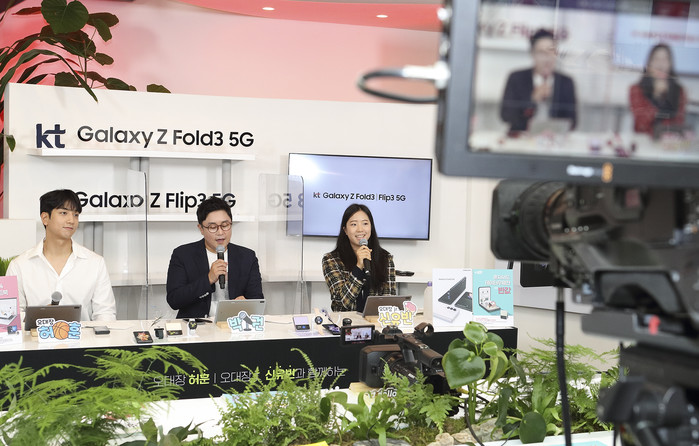 KT는 갤럭시 Z 폴드3와 갤럭시 Z 플립3 개통 행사를 24일 새롭게 변화된 KT의플래그십 공간인 KT애비뉴 강남 매장에서 개최됐다. 이 행사는 ‘KT 유튜브채널’로도 동시에 공개됐다