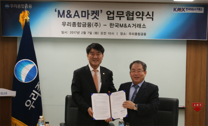 한편 우리종합금융은 M&A 마켓 활성화를 위하여 국내에서 가장 많은 M&A 정보를 보유하고 있는 한국 M&A 거래소와 2월7일 업무협약을 맺고 M&A매도·매수 기업정보를 공유하기로 했다.